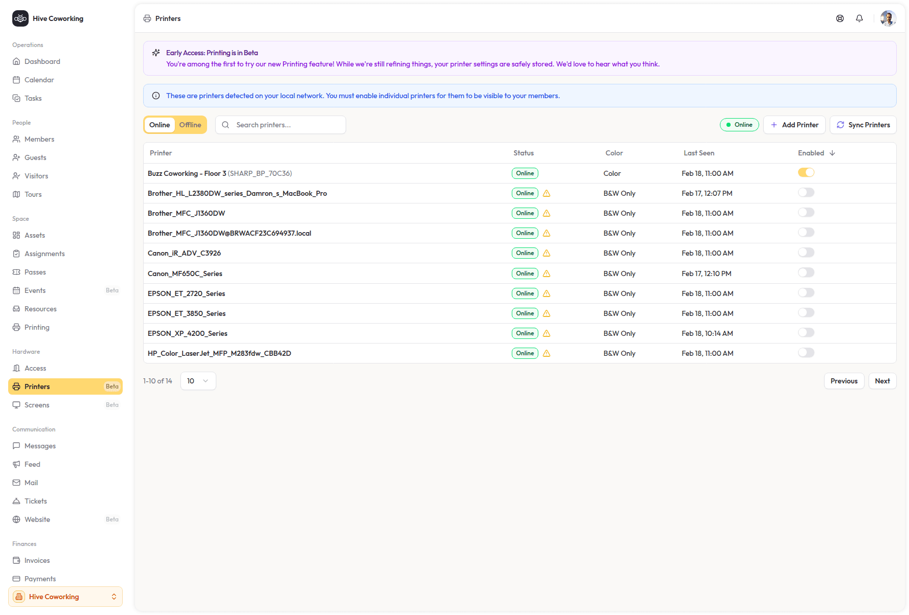 For most coworking spaces, printing lives outside the core operational system. It requires separate setup, separate instructions, and often separate accounts. Staff ends up acting as technical support when members need guidance or guests need explanation. Even after the effort, it still interrupts the otherwise seamless experience a modern workspace should provide, all while creating extra work just to recover costs (or risk losing entirely).